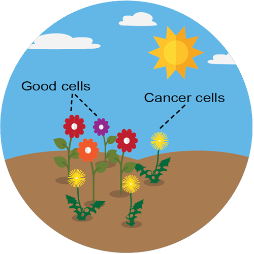 Cancer cells are like weeds in your garden. Sometimes the body cannot get rid of the weeds and needs help.